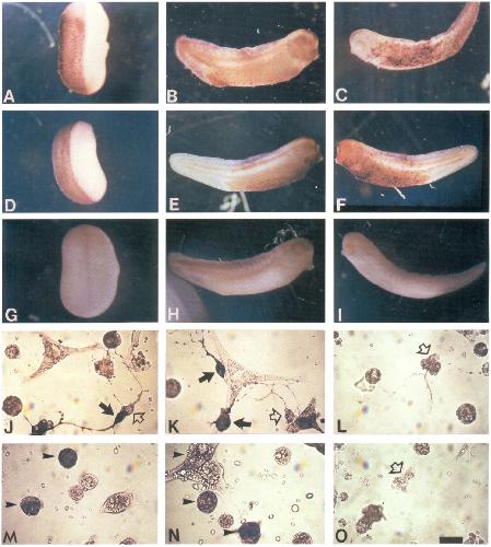 in the spinal cord and other neuronal structures, but no difference in staining intensity was found between the two sides of the embryo. J and K,