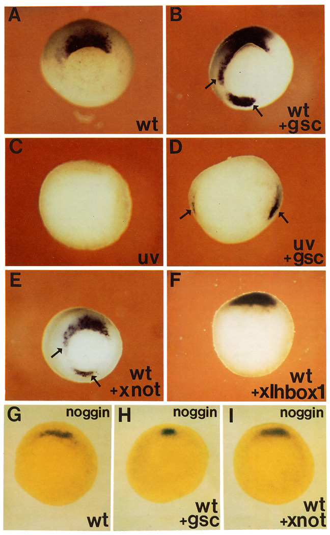 Xenopus axis formation: induction of goosecoid by injected Xwnt-8 and activin mRNAs.