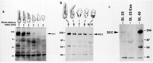723 as described in the legend to Fig. 3. DCC protein and mobility of molecular weight markers are indicated. (B) Studies of LiCldorsalized