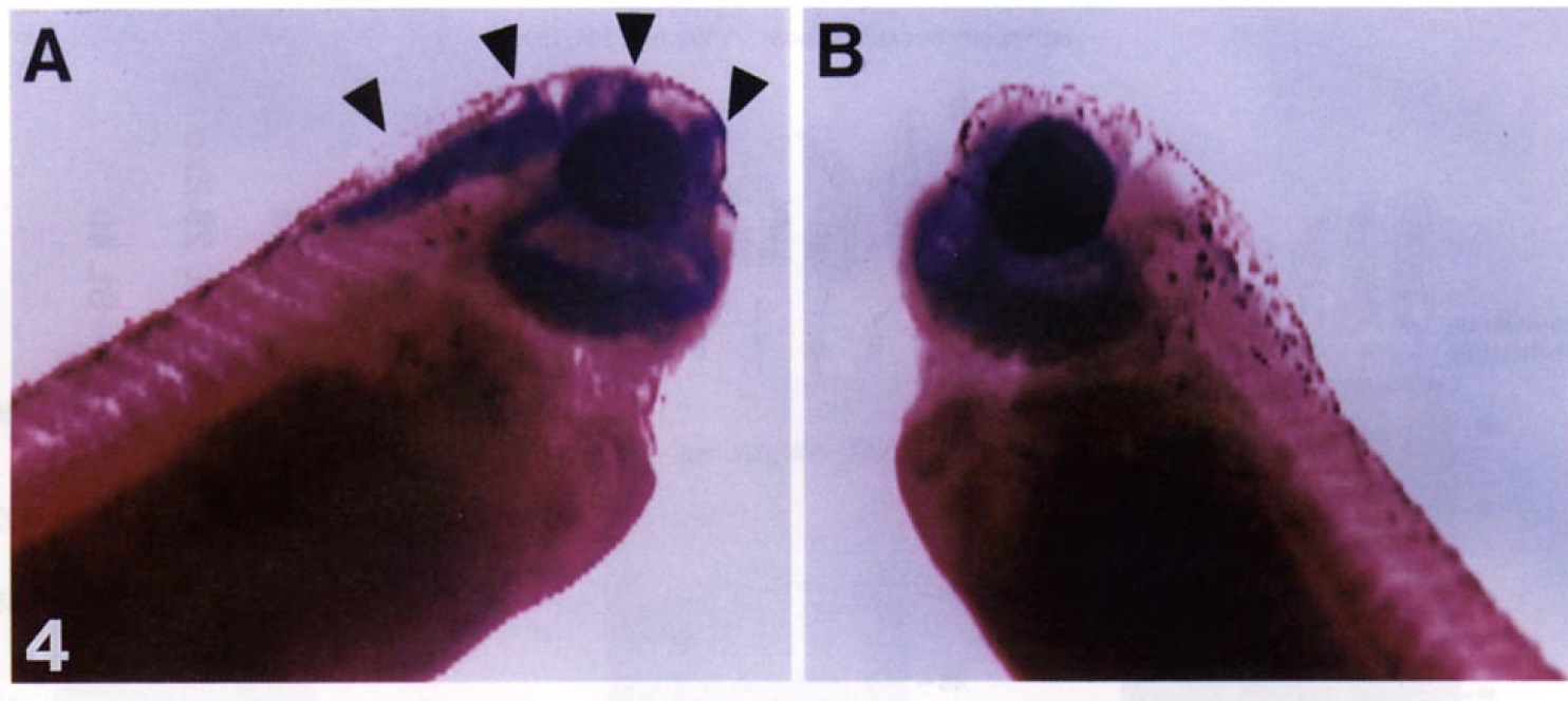 the legend to Fig. 4, in situ hybridization was carried out on whole mount embryos with digoxigenin-labeled anti-sense or sense XDCCo: riboprobes
