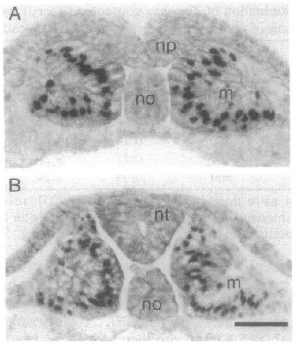 nuclei are present throughout the myotomes (m). The morphology