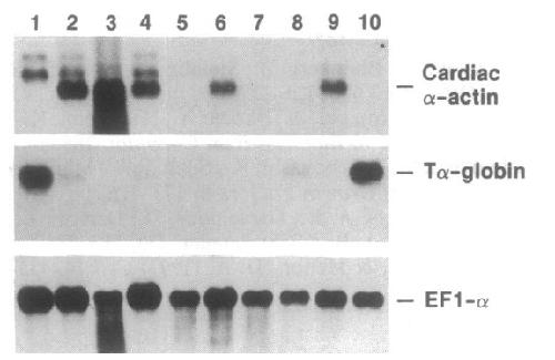 Ta globin, cardiac a-actin, and EF-la mRNAs. In lanes 1-4, RNA