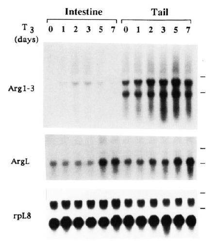 FIG. 4. Northern blots showing that Xenopus argl-3 and argL