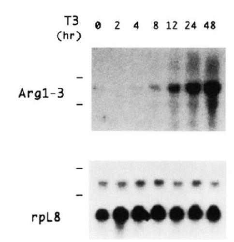 FIG. 7. A Northern blot showing that a r g l 3 responded to T,