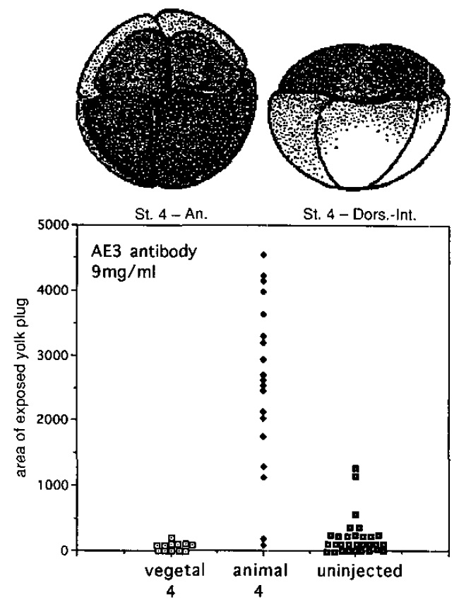 1992) (area is displayed in pixels). Injection of antibody into the vegetal