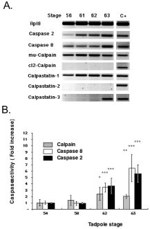 Developmental cell death during Xenopus metamorphosis involves BID cleavage and caspase 2 and 8 activation.