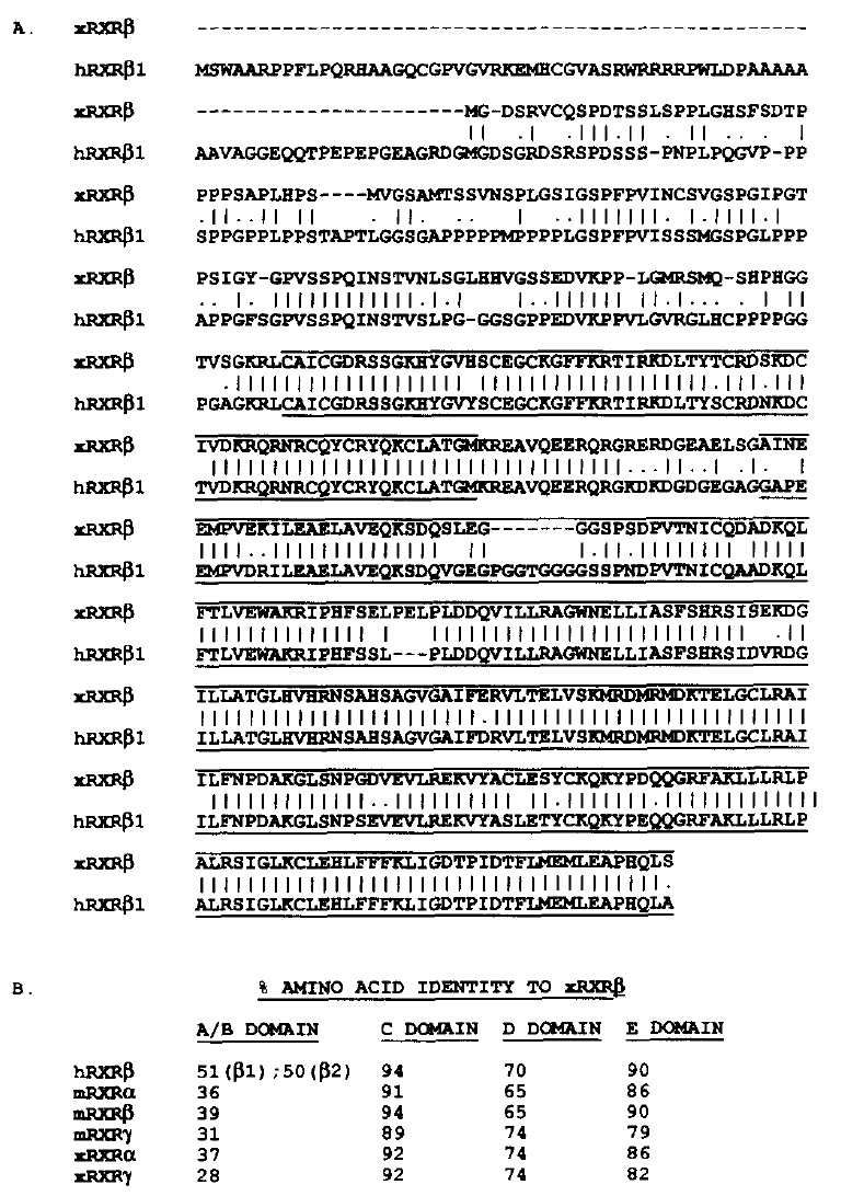 Isolation of a novel RXR from Xenopus that most closely resembles mammalian RXR beta and is expressed throughout early development.