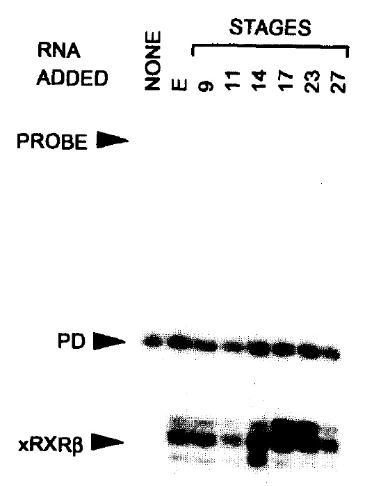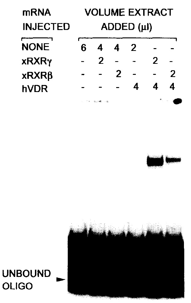 In a search for nuclear receptors that may mediate the teratogenic effects of the potential morphogen, retinoic acid, on the early development of Xenopus we have isolated a novel Xenopus RXR that most closely resembles the mammalian beta-type RXR. Xenopus RXR beta mRNA is expressed throughout early embryogenesis, and functions as an accessory protein to enhance the DNA-binding of other members of the nuclear receptor superfamily.