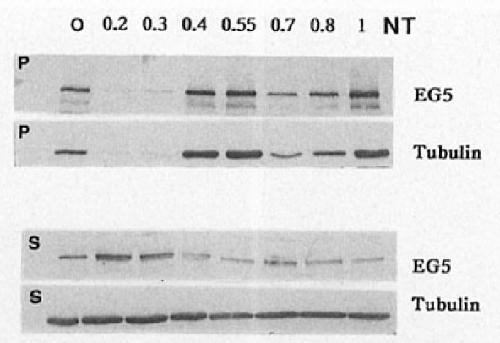 Western blots using anti-Eg5 tail (135-kDa band) and anti-tubulin
