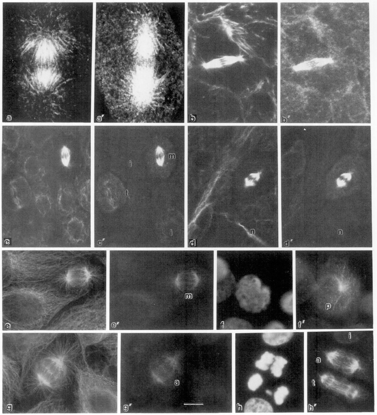 (a-d) and affinity-purified anti-Eg5 tail (a'-d') antibodies and A6 cells with anti-tubulin (c, g) and C9 (e', g') antibodies or Hoechs t dye (f, h) and