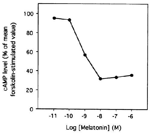 FIG. 3. Melatonin inhibition of forskolin-stimulated cAMP accumulation