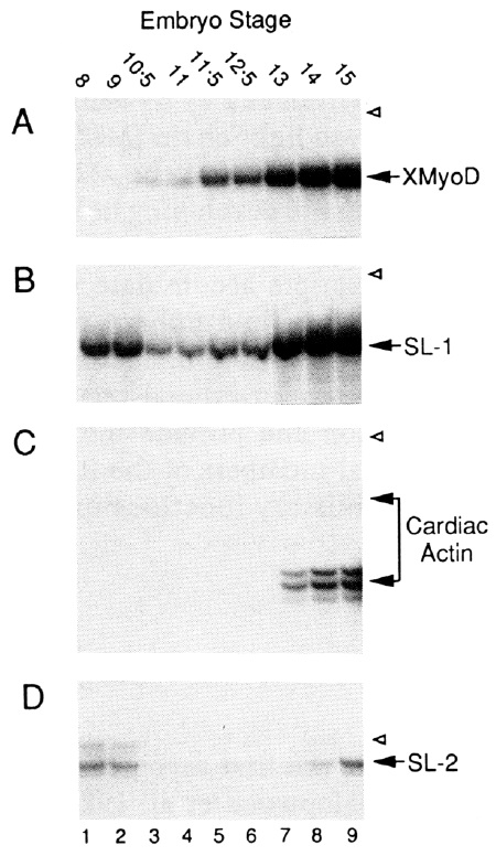 Figure 1. Sequential expression of XmyoD and the RSRF genes