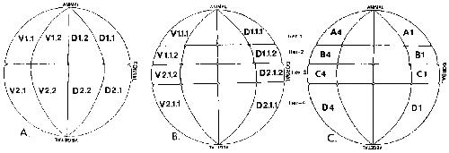 view, dorsal to the top. (B) D1.2, animal view, dorsal to the top.