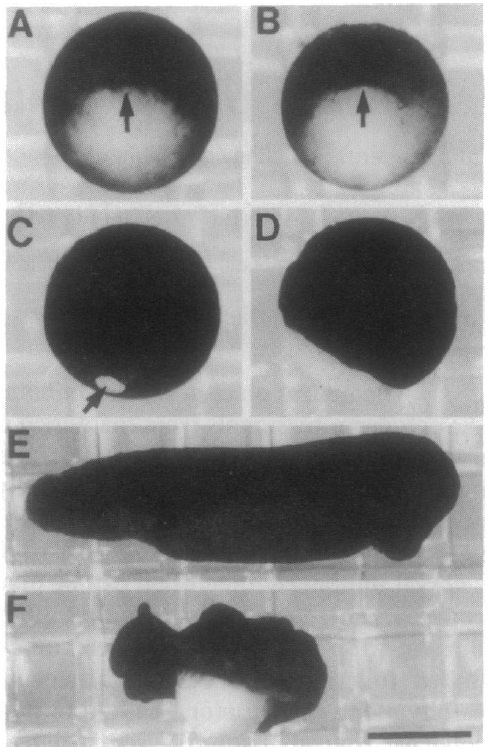 normal blastopore lip (arrow) as viewed from the vegetal pole. At late