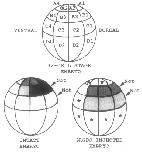 FIG. 3. Schematic representation of 32-cell stage blastomeres (Upper)