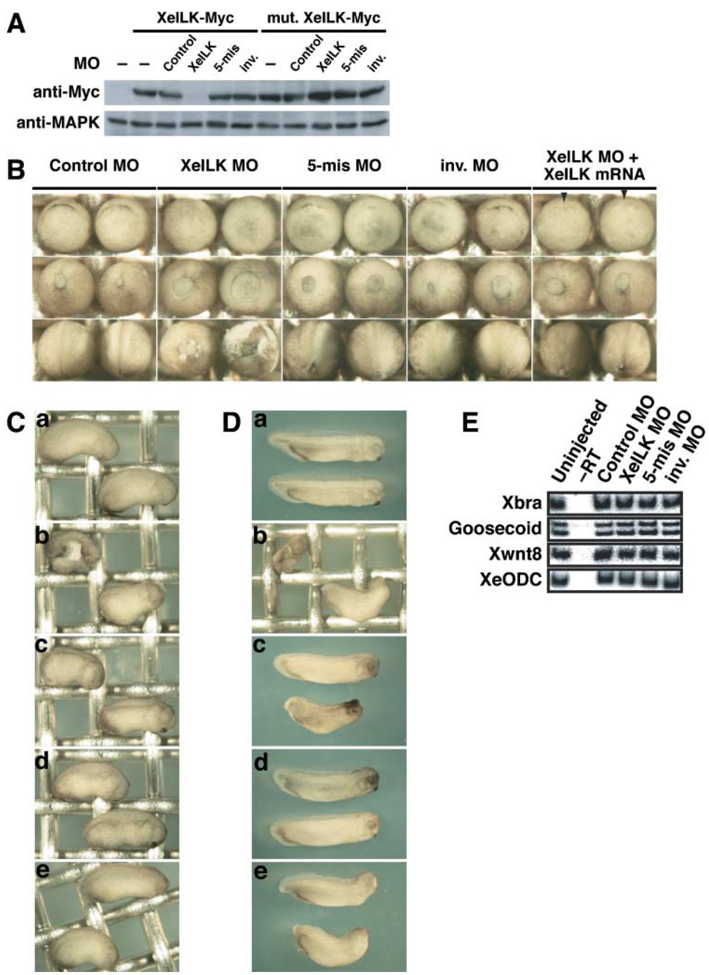 (d) The inv. MO-injected embryos. (e) The XeILK MO plus