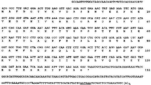 encodes 132 amino acids, followed by a stop codon, and a 3'-untranslated region; the putative polyadenylation signal is underlined.