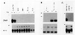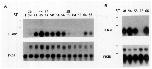 from stage 52- 54 tadpoles not treated(-) or treated with T8 (+)for one day; top and bottom panels are duplicate fi lters hybridized with either