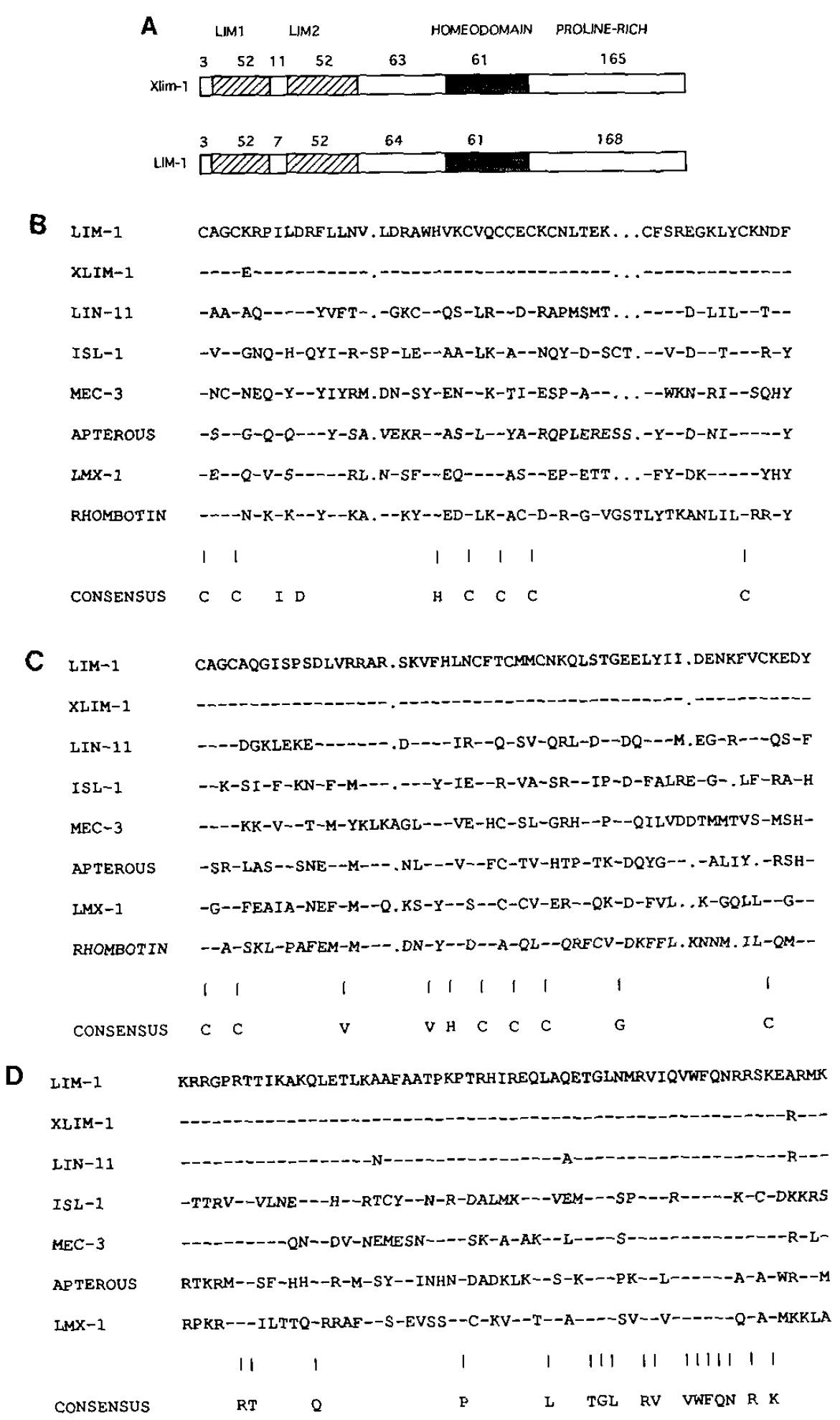Embryonic expression of Lim-1, the mouse homolog of Xenopus Xlim-1, suggests a role in lateral mesoderm differentiation and neurogenesis.