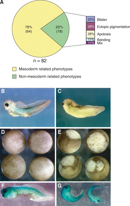 and non-mesodermal related phenotypes(blister, ectopic pigmentation, apotosis, bending and mix). Values are given as percentages of identified active