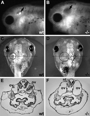 comparison to the wild-type structure in (E). nt, neural tube; ov, otic