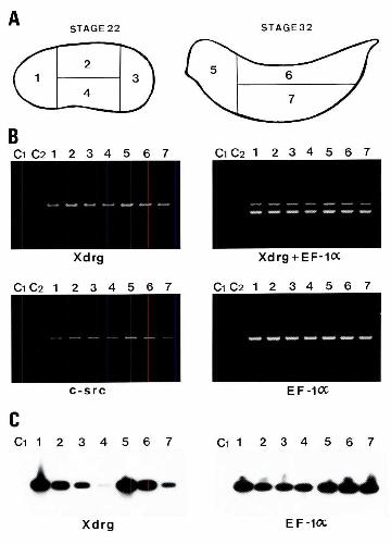 hybndlzed to Xdrg, c-src and EF-7a probes respectively. The exposure