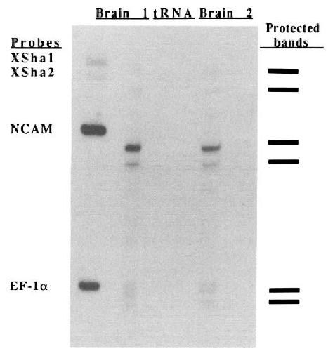 The resultsf or two different brain RNA preparationsa re shown.A