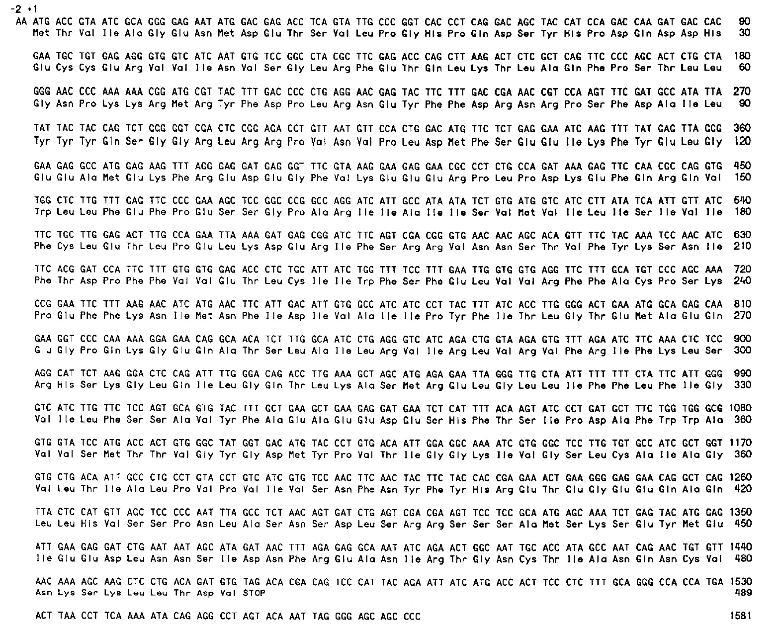 Figure 1. Sequence of a Shaker homolog in Xenopus: nucleotide and predicted amino acid sequence of XShal. The three-letter code for amino