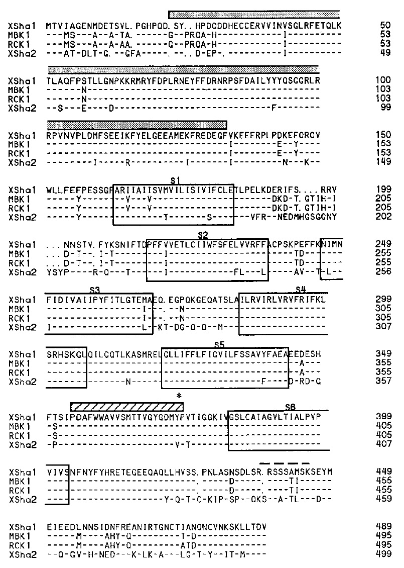 al., 1988; Stuhmer et al., 1989) but only 77% identity with XSha2, a