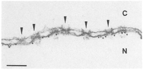 pore complexes are marked by arrowheads. C, cytoplasmic side.