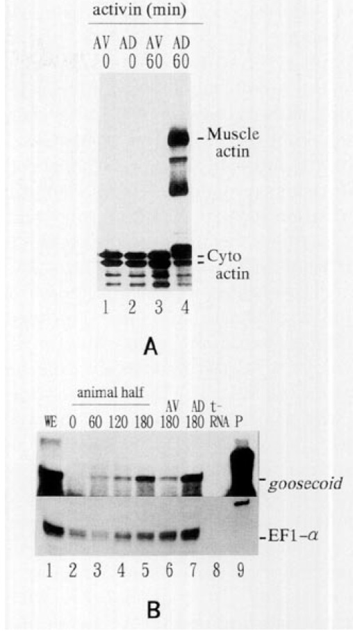 activin A for different times. Lane 1, probe. Lane 2, tailbud stage