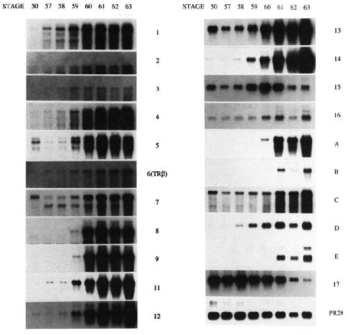 genes (17 and 19) in tadpole tails assayed by Northern blot.