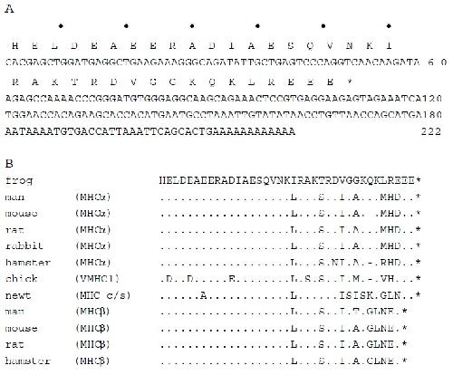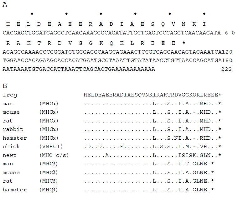 (A) Nucleotide sequence of a Xenopus MHC cDNA fragment