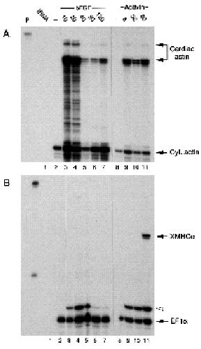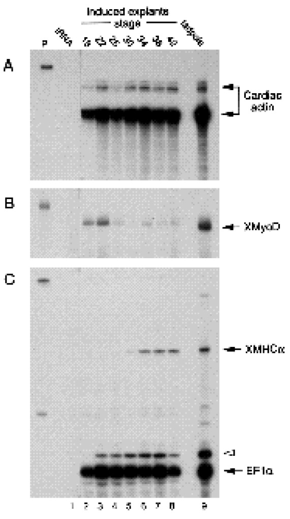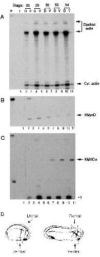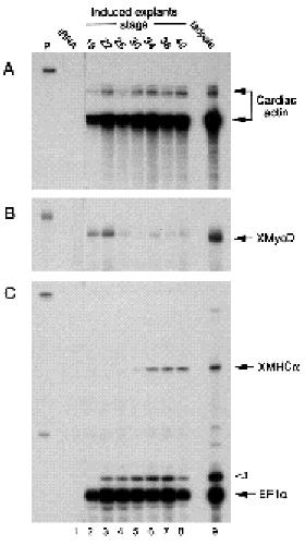 presence of cardiac actin (A), XMyoD (B) and XMHCa