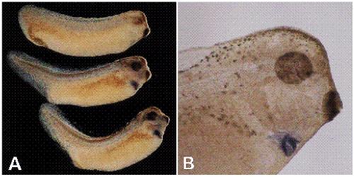fused aggregates of explants (A) which were dissected from pigmented embryos. No signal was detected in explants that failed to fuse,