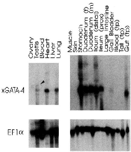 Fig. 3. The GATA-4 gene is transcribed in heart, gonads and