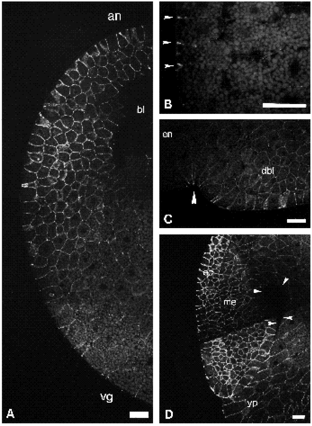 (arrowheads) between vegetal