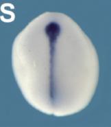 shh (sonic hedgehog) expression, a marker for notochord, in a X. laevis embyro, NF stage 17/18 (mid-neurula stage), |