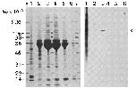 acrylamide gel. Right: Fluorogram of the same gel. Lanes: