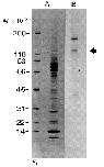 and the fluorogram in B. Arrow corresponds to 124´10-3 Mr. |