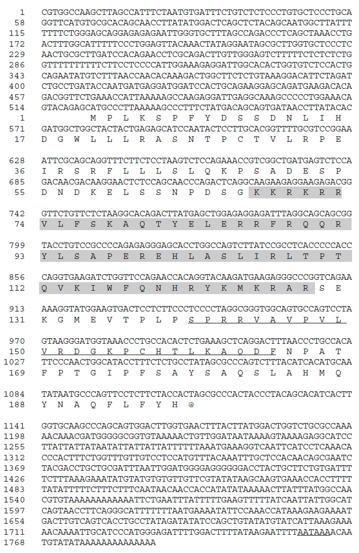 underlined. The consensus polyadenylation signal (AATAAA) at