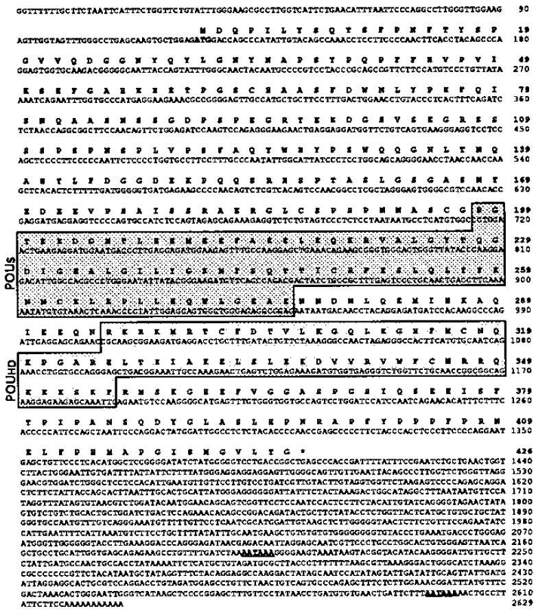 otherwise fully conserved between class 1-V POU-domain proteins. These seven amino acids are indicated in bold. The methionine residue in the