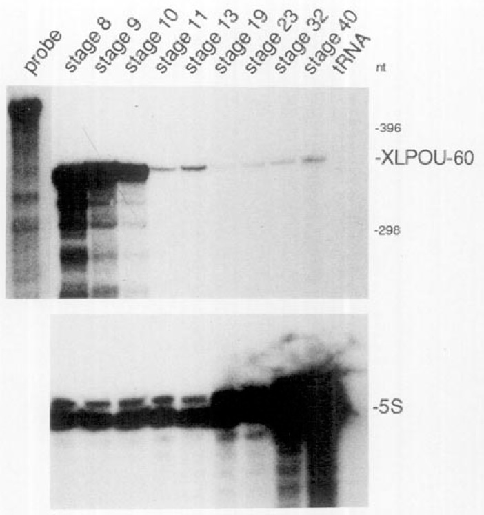 FIG. 7. RNase protection showing XLPOU-60 expression in later