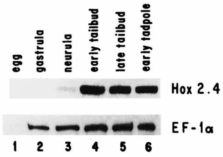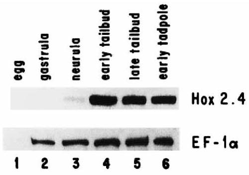 Fig. 3. Temporal expression of the Hox 2.4 transcript in Xenopus