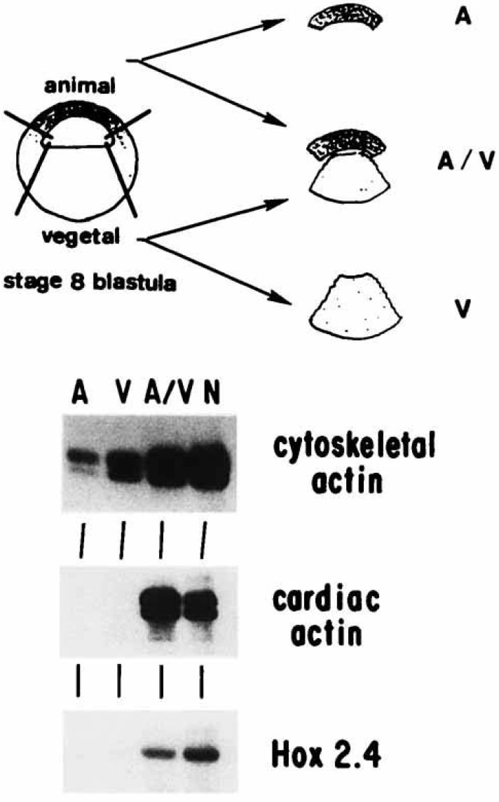 Fig. 6. Hox2.4 expression requires mesoderm induction. The top part
