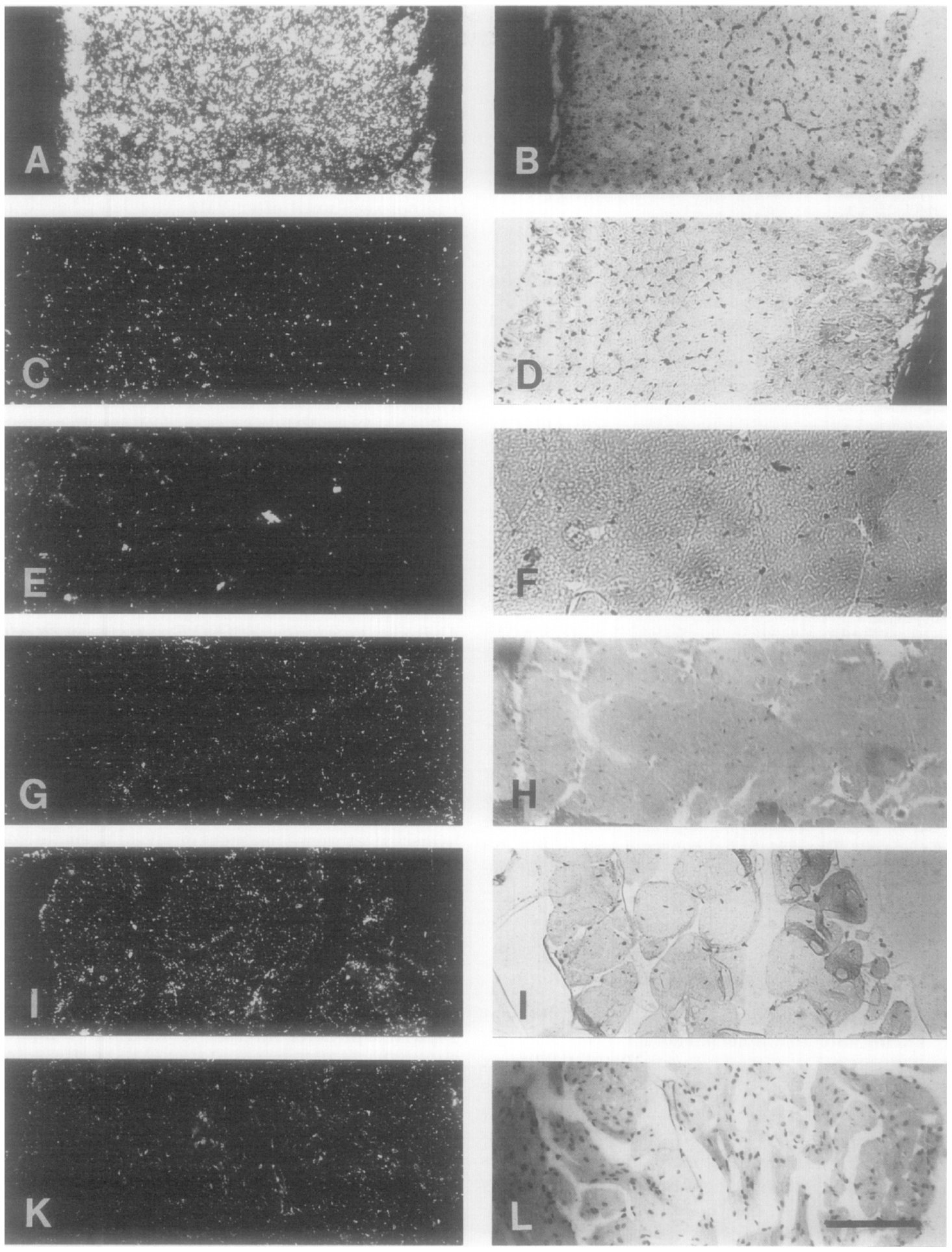 FIG. 4. LM expression in different skeletal and cardiac muscles of the frogxenopus Levis. Dark-field (left) and the corresponding bright-field
