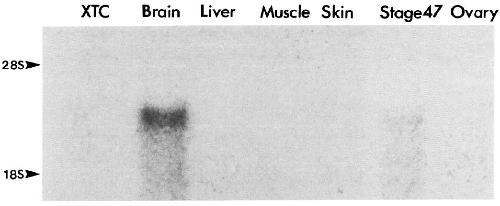 Figure 4. Northern blot analysis of the tissue specific distribution of XNIF mRNA. Aliquots of 1 rcgo f polyA+ RNA from XTC (aX enopusk idney