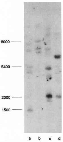 autoradiography. Band sizes (in base pairs) were estimated by comparison