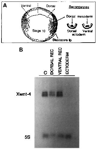 lane. (B) Temporal expression of Xwnt-4 mRNA during
