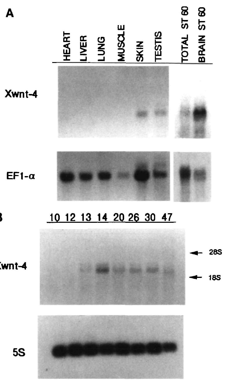 Fig. 2. Expression of Xwnt-4 in adult tissues and during